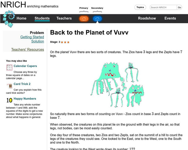 University of Cambridge: Nrich: Back to the Planet of Vuv