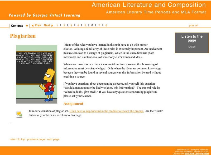 Ga Virtual Learning: American Literary Time Periods and Mla Format: Plagiarism