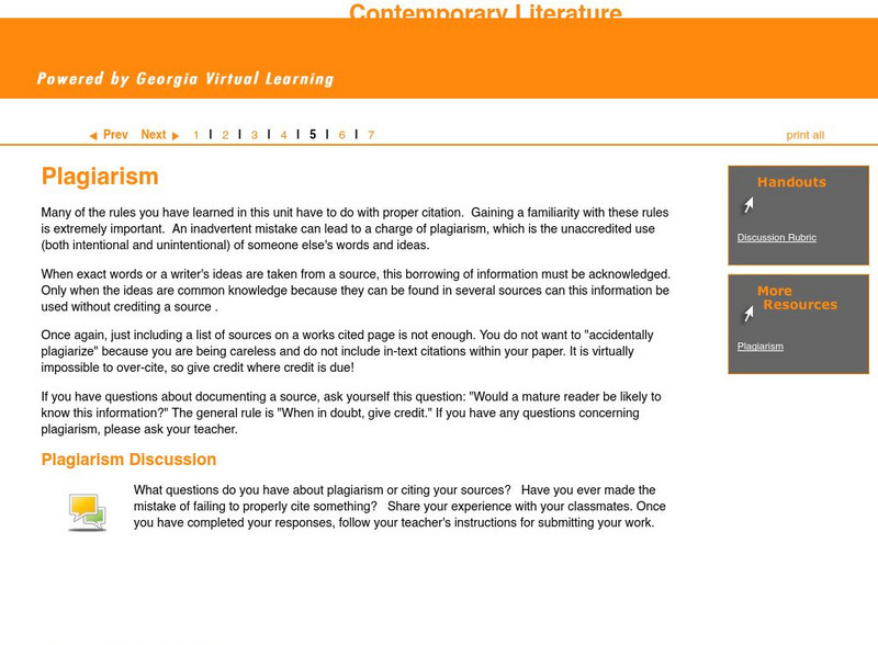 Ga Virtual Learning: Contemporary Literature Course Overview: Plagiarism