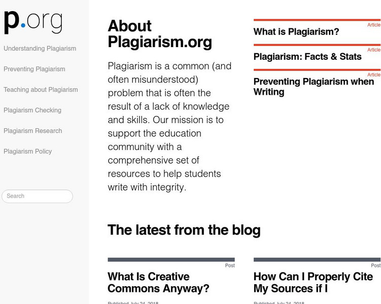 A thorough site providing all writers with all the information they need to know about plagiarism. Understand what plagiarism is, types of it, methods to cite works, as well as other resources for educators, parents, and students....