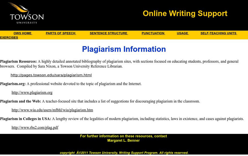 This page offers links to information about plagiarism, how to prevent it, statistics, and consequences.
