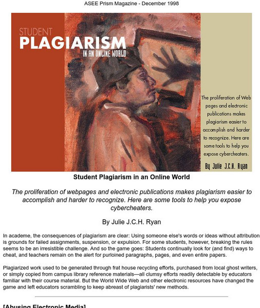 Prism Magazine offers an essay on student plagiarism and how to track down if the paper is plagiarized.