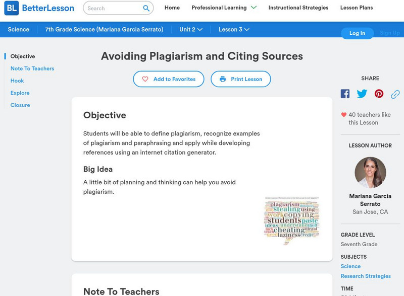 Better Lesson: Avoiding Plagiarism and Citing Sources