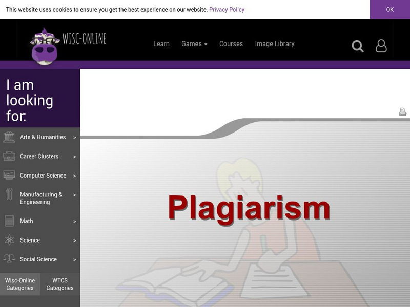Plagiarism is a serious offense in many educational settings. Plagiarism and copyright laws are reviewed here. Activities to avoid plagiarism are also provided through links. W.9-10.8 Sources, W.11-12.8 Sources/Integrate/Cite;...