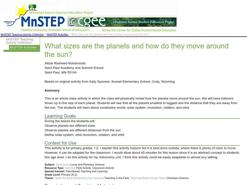 Serc: Mn Step: What Sizes Are the Planets and How Do They Move Around the Sun?