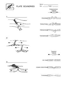 In this moving continents worksheet, students review the different types of plate boundaries, what causes earthquakes, and where volcanoes are formed. This worksheet has 10 fill in the blank and 9 short answer questions.