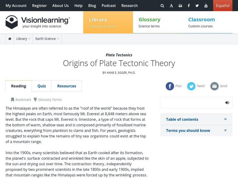 Visionlearning: Plate Tectonics: The Origin of Plate Tectonic Theory