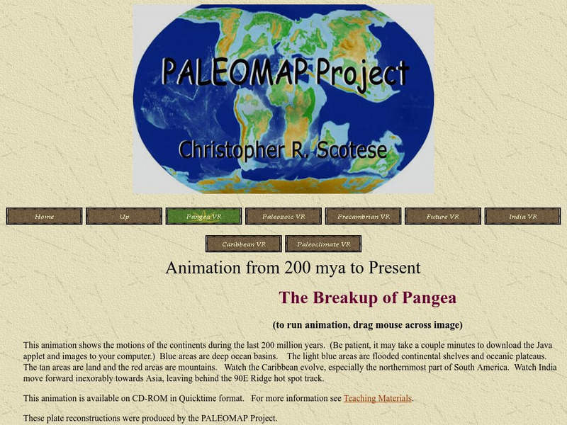 Virtual reality animation map showing continental drift from 200mya to the present. The animation map is small but effective in showing the positions of the land masses.