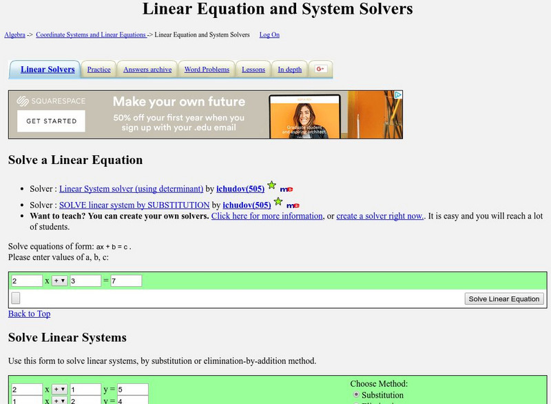 Algebra.com: Linear Equation and System Solvers: Solve Linear Systems