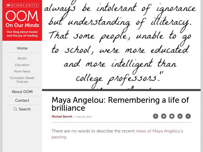 Scholastic News: Week of 5 26 14: Maya Angelou: Remembering a Life of Brilliance