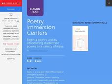 Pupils explore the genre of poetry through centers. They listen to the sound of poems being read aloud, visualize individual poems and observe and apply line breaks in poetry.