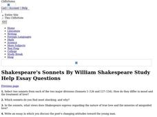 In this online interactive reading comprehension worksheet, learners respond to 8 short answer and essay choice questions based on various Shakespearean sonnets. Students may also access an online quiz on the sonnets using the link...