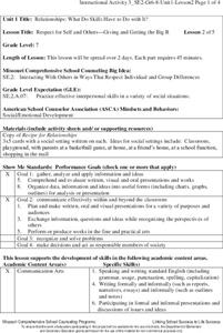 Tween find out what it means to give and get respect. After reviewing the Recipe for Relationships studied in a previous lesson, groups create a dramatization of two-minute scenario in which an individual behaves inappropriately in a...