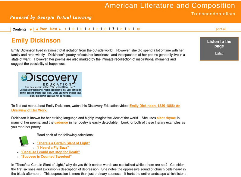 Ga Virtual Learning: American Literature: Transcendentalism: Emily Dickinson