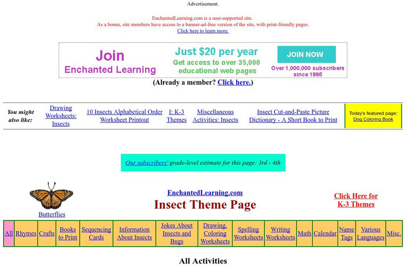Enchanted Learning: Insect Theme Page