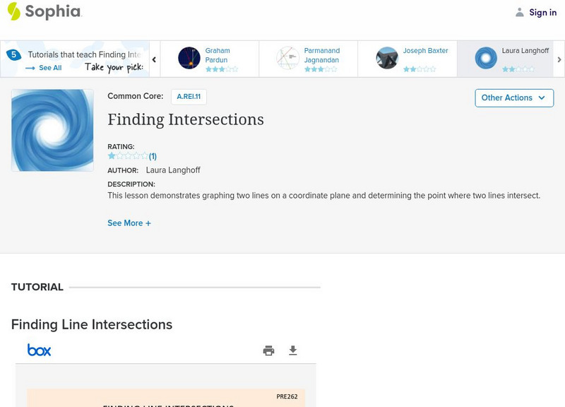 This lesson demonstrates graphing two lines on a coordinate plane and determining the point where two lines intersect. It is 2 of 5 in the series titled "Finding Intersections."