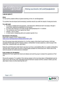 Students explore the possible effects of global warming. In this geography/global warming lesson, students identify regions using an atlas and complete a global warming worksheet. Students perform an experiment in which they simulate...
