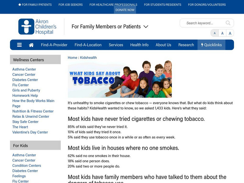 Akron Children's Hospital: Kidshealth: What Kids Say About Tobacco