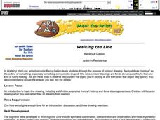 Learners get an introduction to basic line drawing, including a definition, examples from art history, and three drawing exercises. They focus on drawing what they see rather than on drawing from memory.