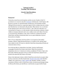 Students take a closer look at historical relations between the United States and Mexico. In this Texas annexation lesson, students examine primary documents authored by Zachary Taylor, James Polk, and Abraham Lincoln to consider why the...