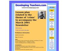 Students practice orally with the vocabulary of "crime." students read for detail and practice speaking in telling anecdotes.
