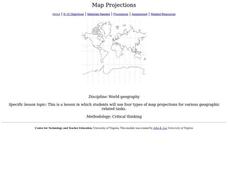 Learners view examples of various map projections using a website. Students record differences between the map projections. Learners discuss uses for the various map projections and the differences between the maps they viewed. ...