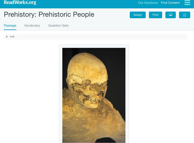 [Free Registration/Login Required] An informational text about prehistoric people and scientists who study them. A question sheet is available to help students build skills in reading comprehension.