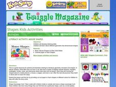 Students listen to the book Mouse Shapes and identify the shapes in the book as it is being read. In this shapes lesson, students identify the shapes in the book, and then play with cut out shapes that they can hold in their hands.