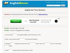 In this using the verb "to be" activity, middle schoolers use the correct form of the verb "to be" in the simple present tense. Students complete 10 sentences.