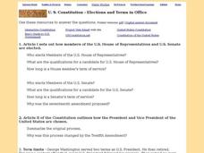 Students explore American elections and terms in office. In this U.S. government activity, students respond to questions about voting rights. Students then write position papers on the existence of the Electoral...