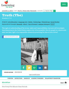 Students investigate how democracy in the United States makes civic virtue possible. They examine the rights and responsibilities associated with democracy. In small groups, they create public service posters that highlight these ideas.