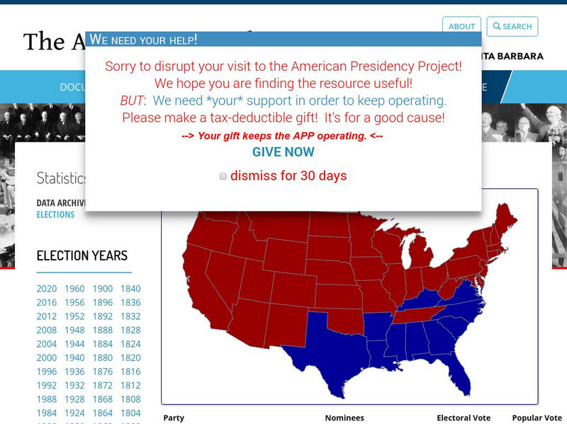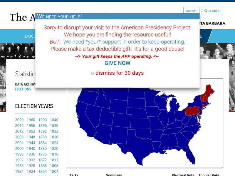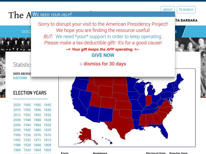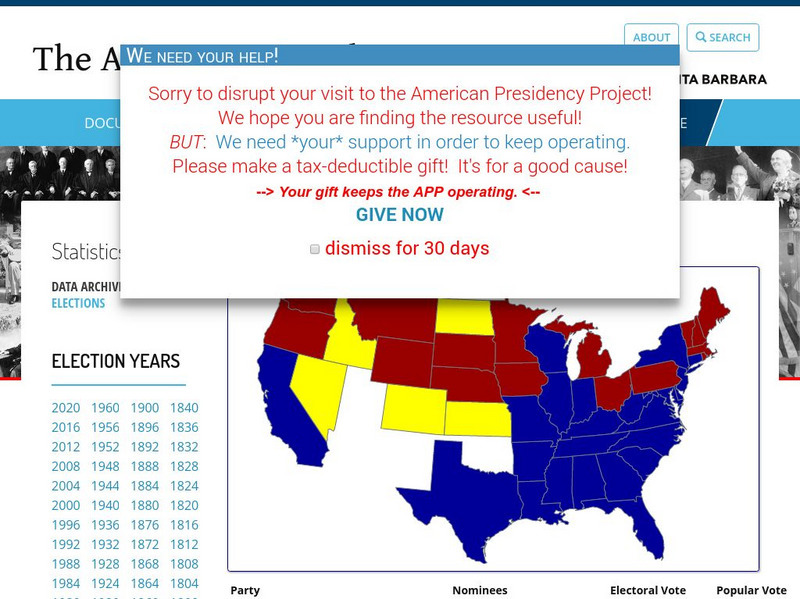 Online resource that provides detailed data for the presidential election of 1964 won by Democratic candidate, Lyndon B. Johnson.
