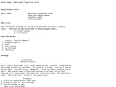 Students experiment with primary colored water to mix new colors. They record new colors on a simple data sheet and share opinions on their work.