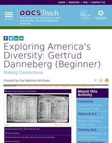 Everyone is an immigrant in their own way. Young scholars read historic documents to understand one woman's journey from Germany to the United States. The activity uses a mixture of text, discussion, and written prompts to help...