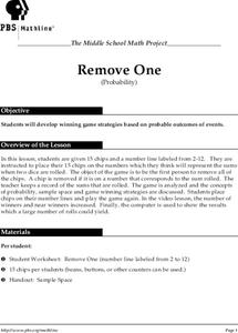 With a set of 15 chips and a number line, learners predict what sums may occur with the rolling of two dice. When their sum comes up, they remove one of the chips from their number line with the objective of being the first to remove...