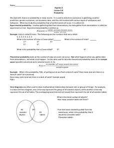 In this Algebra II activity, 11th graders compare and contrast experimental probability and theoretical probability. The two page activity contains explanation of topic, worked examples, and seven practice problems. Answers are not...