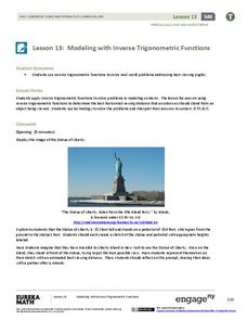 Where should I stand to get the best view? Pupils use inverse trigonometric functions to determine the horizontal distance from an object to get the best view. They round out the lesson by interpreting their answers within context.