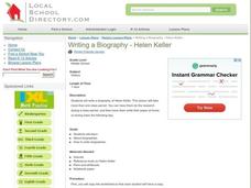 Students write a biography of Helen Keller. This lesson takes more than one class period. They may have to do the research during a class period, and then them write their paper at home or during class the following day.