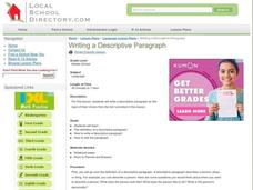 Students discuss the definition of a descriptive paragraph with the class. They read an example of a descriptive paragraph and then write one of their own using one of the included ideas.