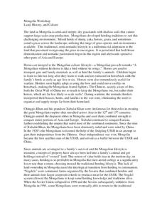 Middle schoolers examine the land, culture and history of Mongolia. In groups, they use the internet to determine what groups held power and during what time periods. They also identify the most important parts of their culture and why...