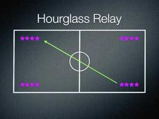 Have the class run continuously in the shape of an hourglass with the hourglass relay activity. Four lines stand in four opposite corners and run to respective lines making the shape of an hourglass. They high five the first person in...