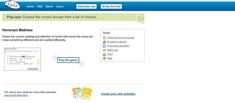 This Quia Pop-Up game is a proofreading exercise in which students see a part of a friendly letter and are asked to select the correct form and punctuation for it using the drop-down menu.