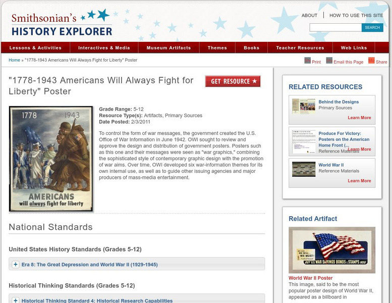 View a photo and read a brief description of the "1778-1943 Americans Will Always Fight For Liberty" poster. Also included is a description of the role of the U.S. Office of War Information and the themes it developed for war propaganda.