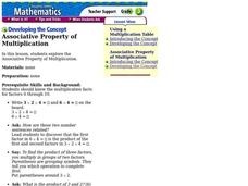 Third graders discover the associative property of multiplication. In this multiplication lesson, 3rd graders explore visual examples of using the commutative and associative properties of multiplication. They also practice solving...