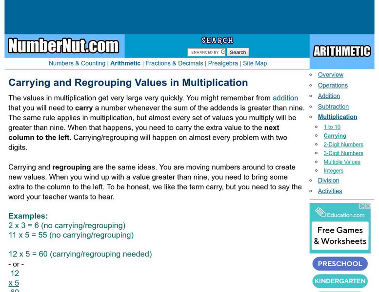 Use what you already know about addition to master this skill in multiplication. This lesson reviews the concept of carrying in multiplication. Detailed examples are provided along with interactive games to practice the skills learned....
