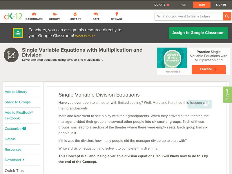 [Free Registration/Login may be required to access all resource tools.] Solve single variable division equations