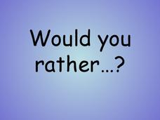 The best way to get to know your class is to ask them questions about themselves. Use these silly questions to ask kids what they would rather do, eat, or see. There are 10 questions total, with three possible answers for each question....