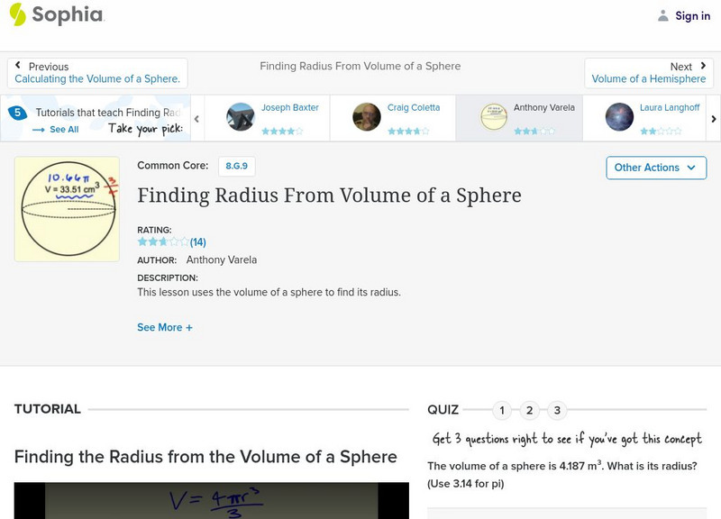 Sophia: Finding Radius From Volume of a Sphere: Lesson 5