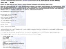 Students explore and analyze how to approach Shakespeare and create more meaning in a variety of contexts. In groups, they imagine three witches on the heath and trying to play it straight. They study various script extracts to evaluate.