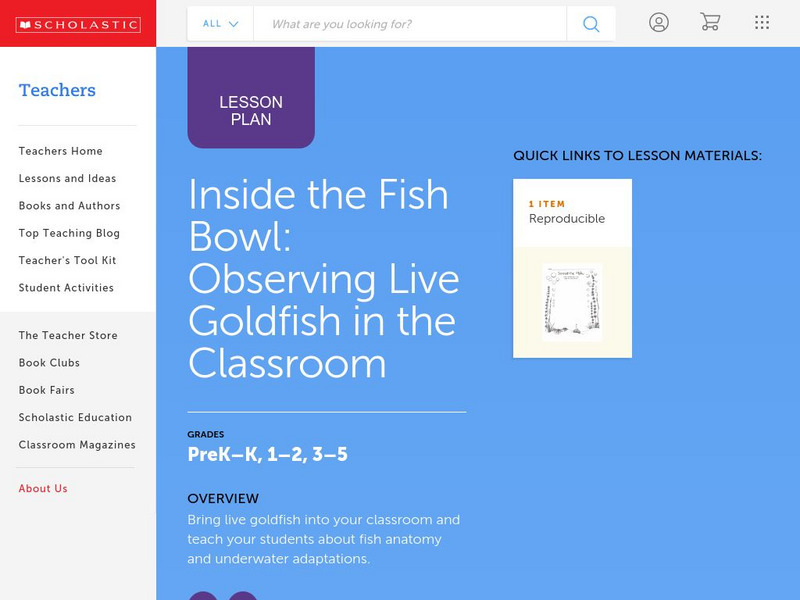 Students observe and discuss goldfish in this activity. There is a printable journal page where students can draw and label the parts of a fish and a literature connection with the book The Rainbow Fish.